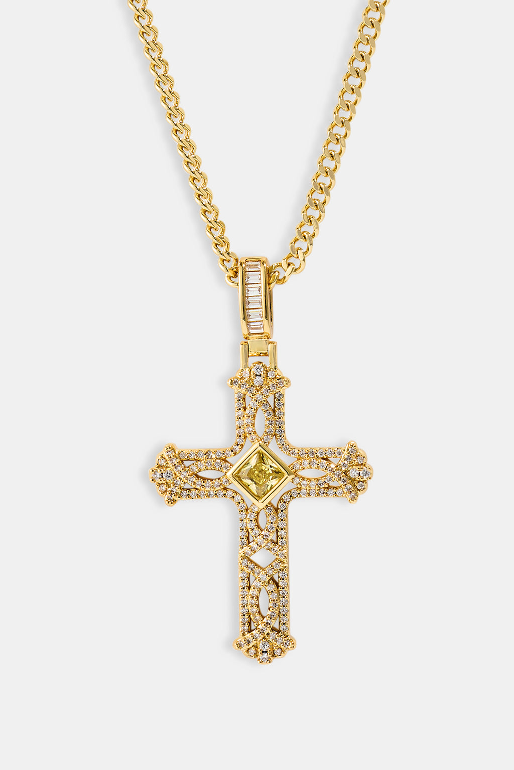 Our Centre Stone Cross Pendant Necklace goes hard. Perfect to stack with a tennis chain. Shine correct.