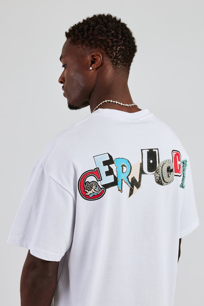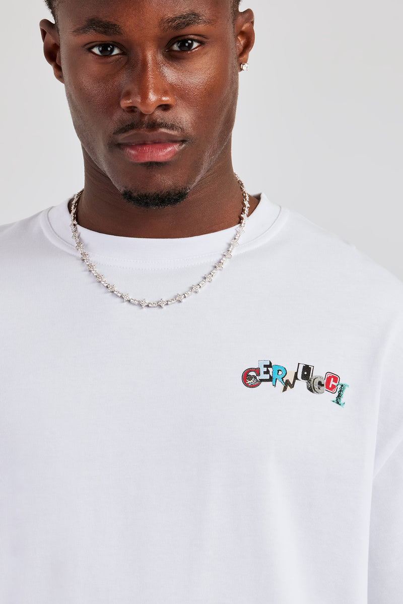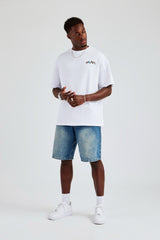 White Oversized back graphic T-Shirt in a medium weight, soft touch cotton. Pair with our denim bermudas for a summer look.