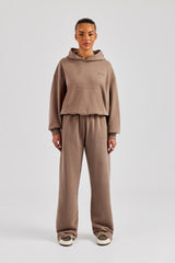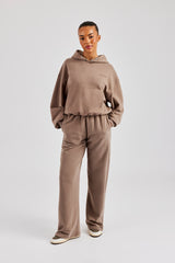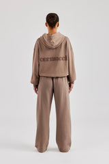 Taupe Wide Leg Jogger. Premium soft touch jersey with Cernucci branded PU patch on centre back waistband.