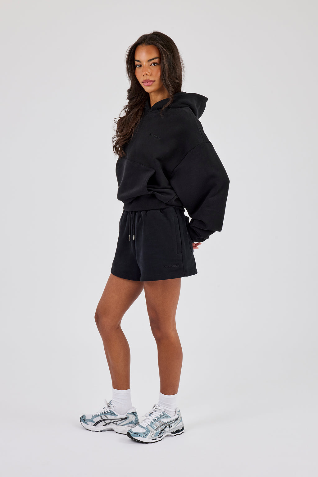 Cernucci Bubble Boxy Hoodie & Embroidered Short - Black