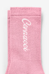 A timeless pair of Baby Pink socks with knitted classic logo on the side.