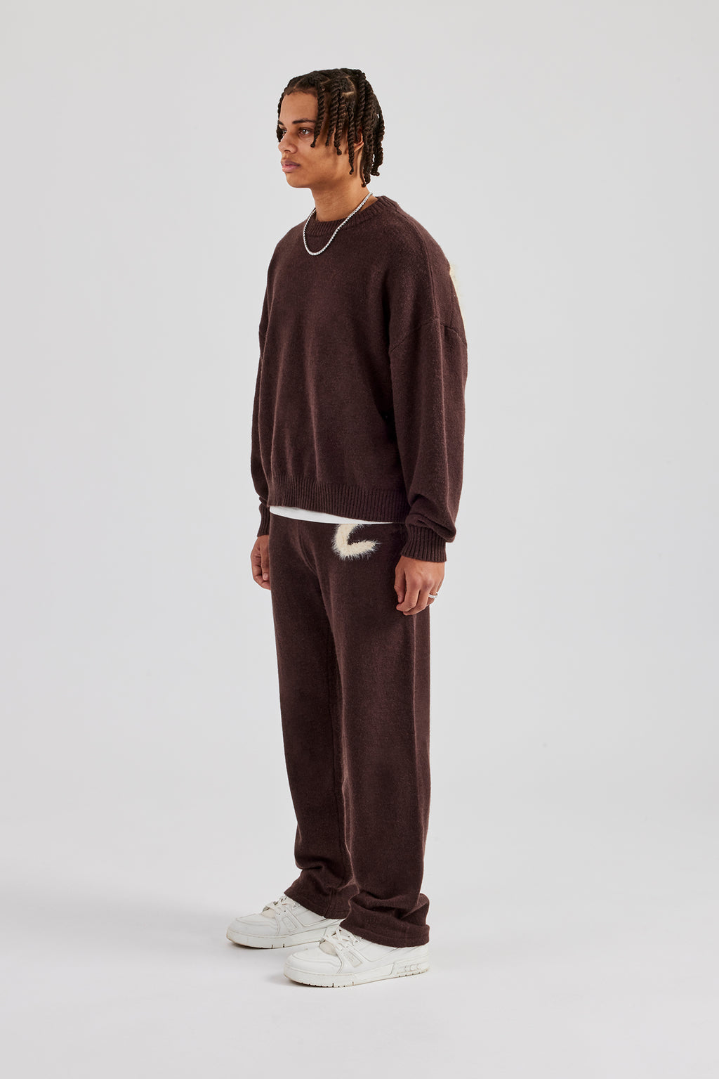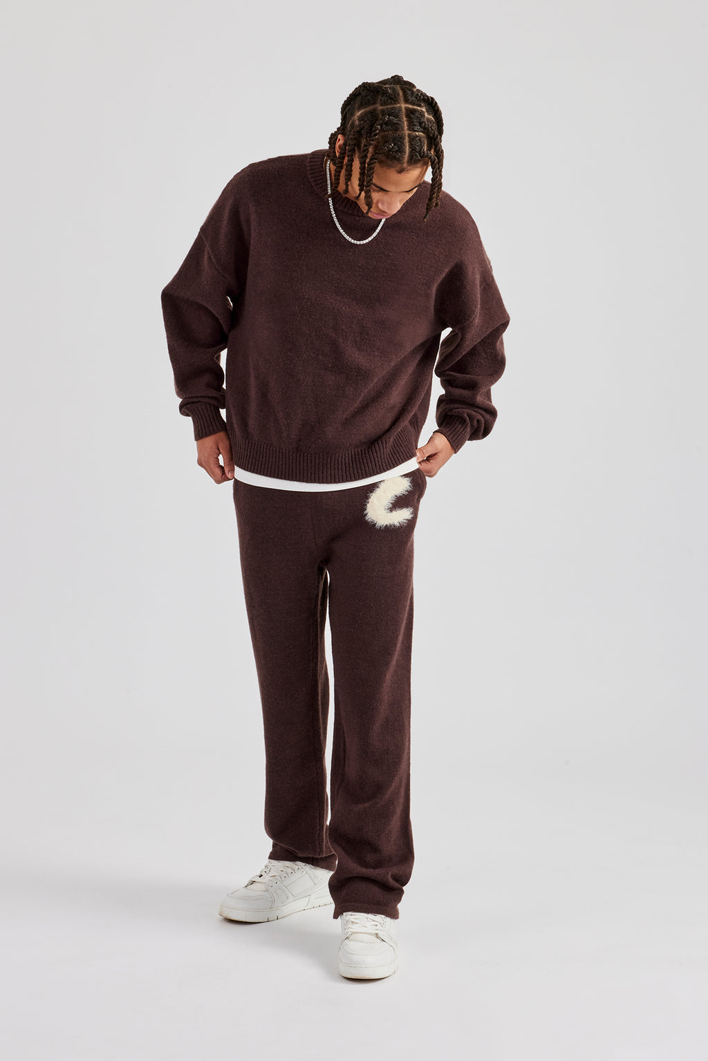 Chocolate C Jogger with fluffy intarsia detail. Pair back with our fluffy intarsia jumper to complete the look.