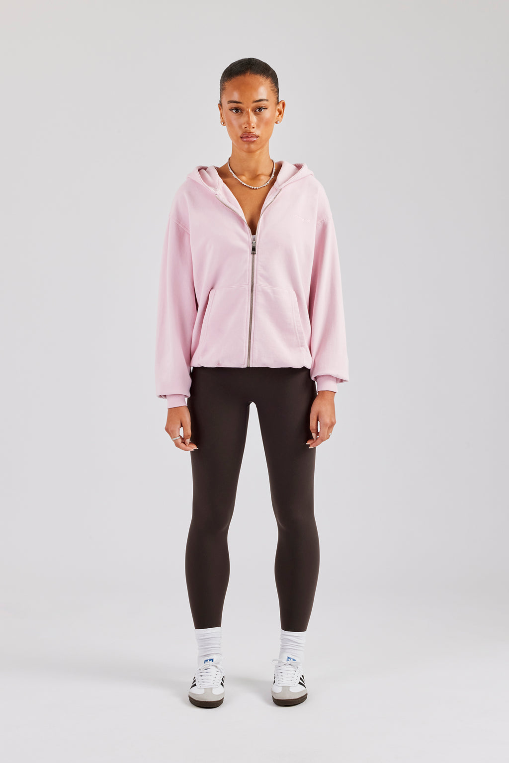 Cernucci Staples. Light pink zip through hoodie with an oversized fit. Premium soft touch jersey.