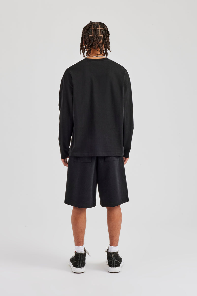 Black washed jersey jort in a medium weight, soft touch cotton, pair with our matching t shirt to complete the look