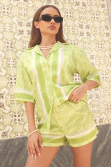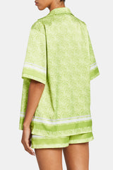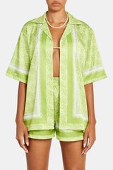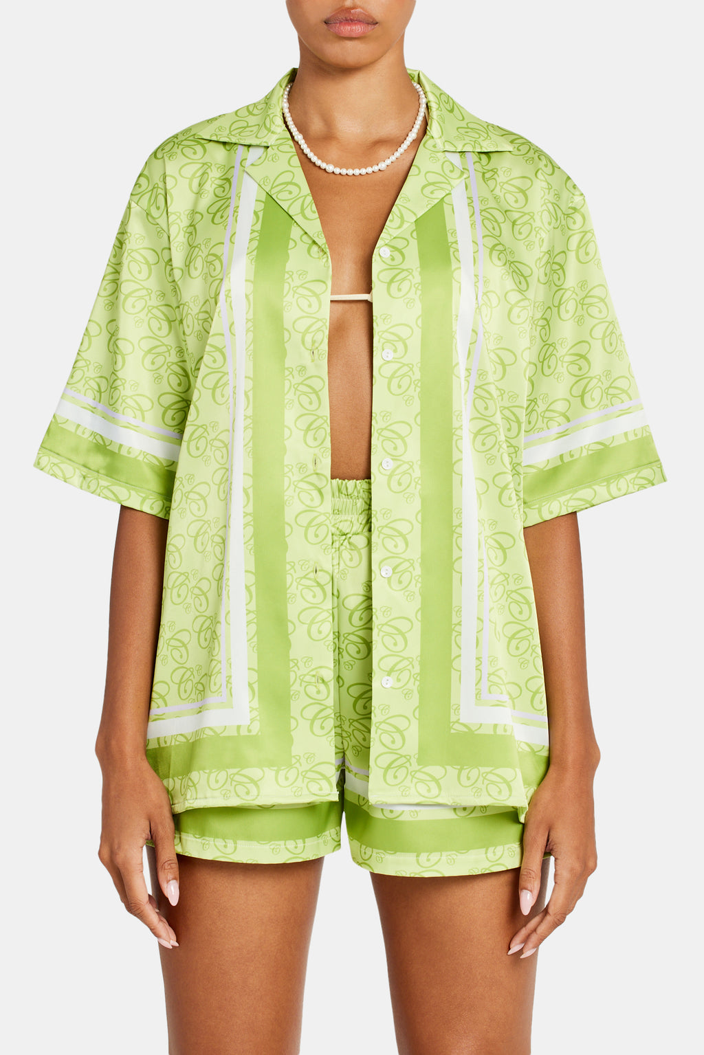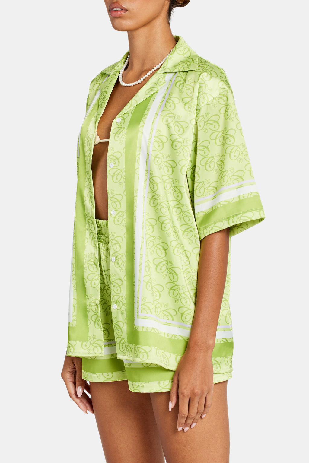 Lime repeat print short sleeve shirt with a soft satin hand feel.