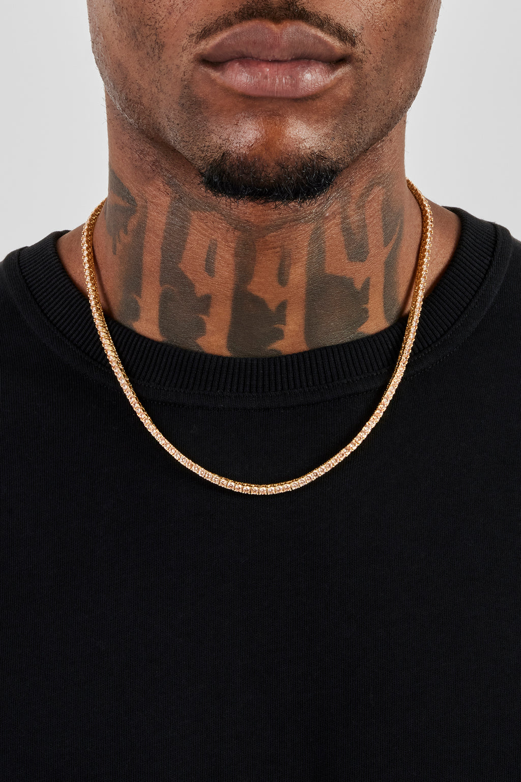 The Champagne Stone Tennis Chain brings that subtle sparkle with warm champagne stones all the way round. It’s smooth, it’s classy, and it catches light like no other. Throw it on for that everyday shine or dial up your going-out fit – either way, it’s doing the most without trying too hard.