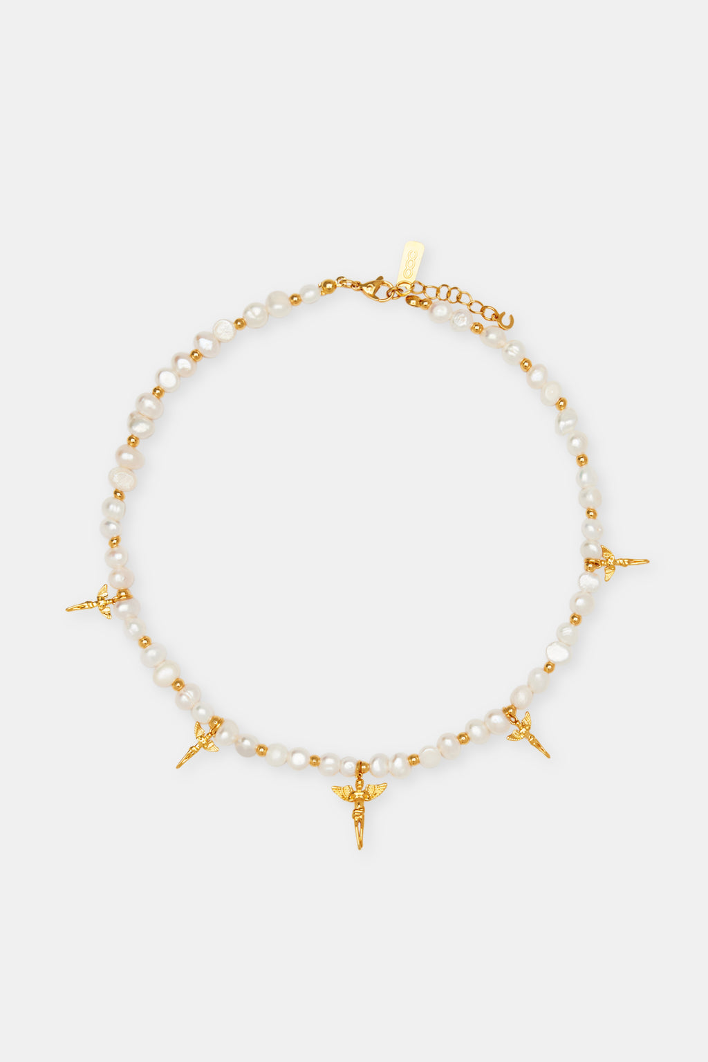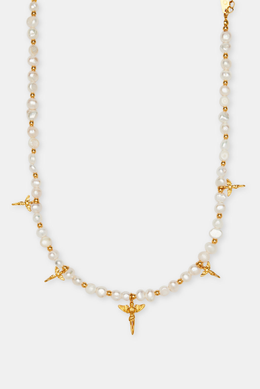 Our Cherub Motif Freshwater Pearl Necklace goes hard and makes a statement. Pair with any pearl bracelet, to be worn for any occasion.