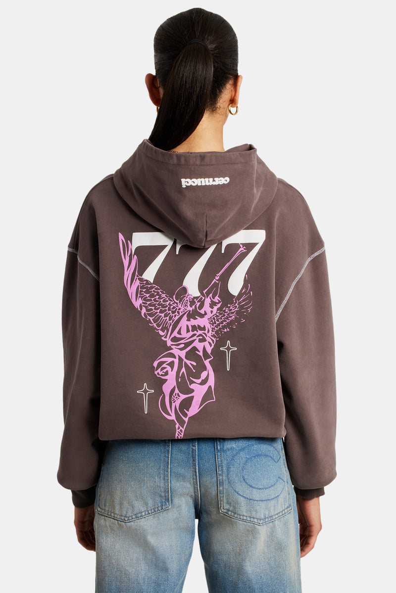 Cherub graphic hoodie with contrast stitch detial. Premium heavyweight soft touch jersey.
