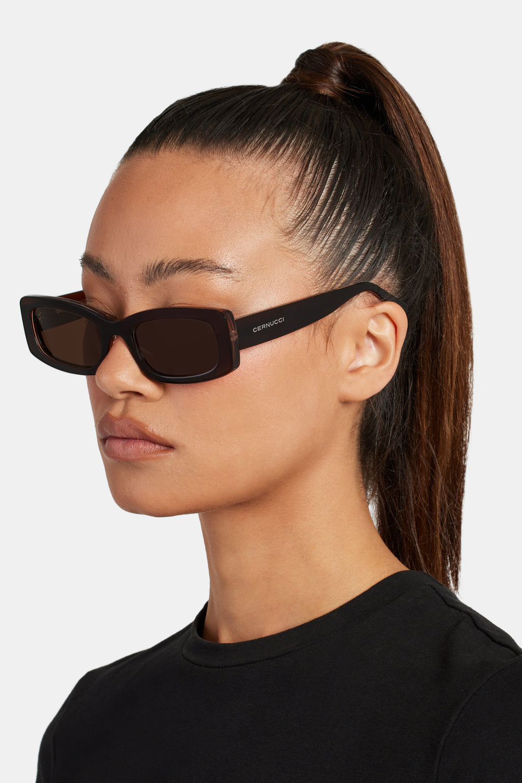 Chunky Narrow Square Acetate Frame Sunglasses in Brown.
