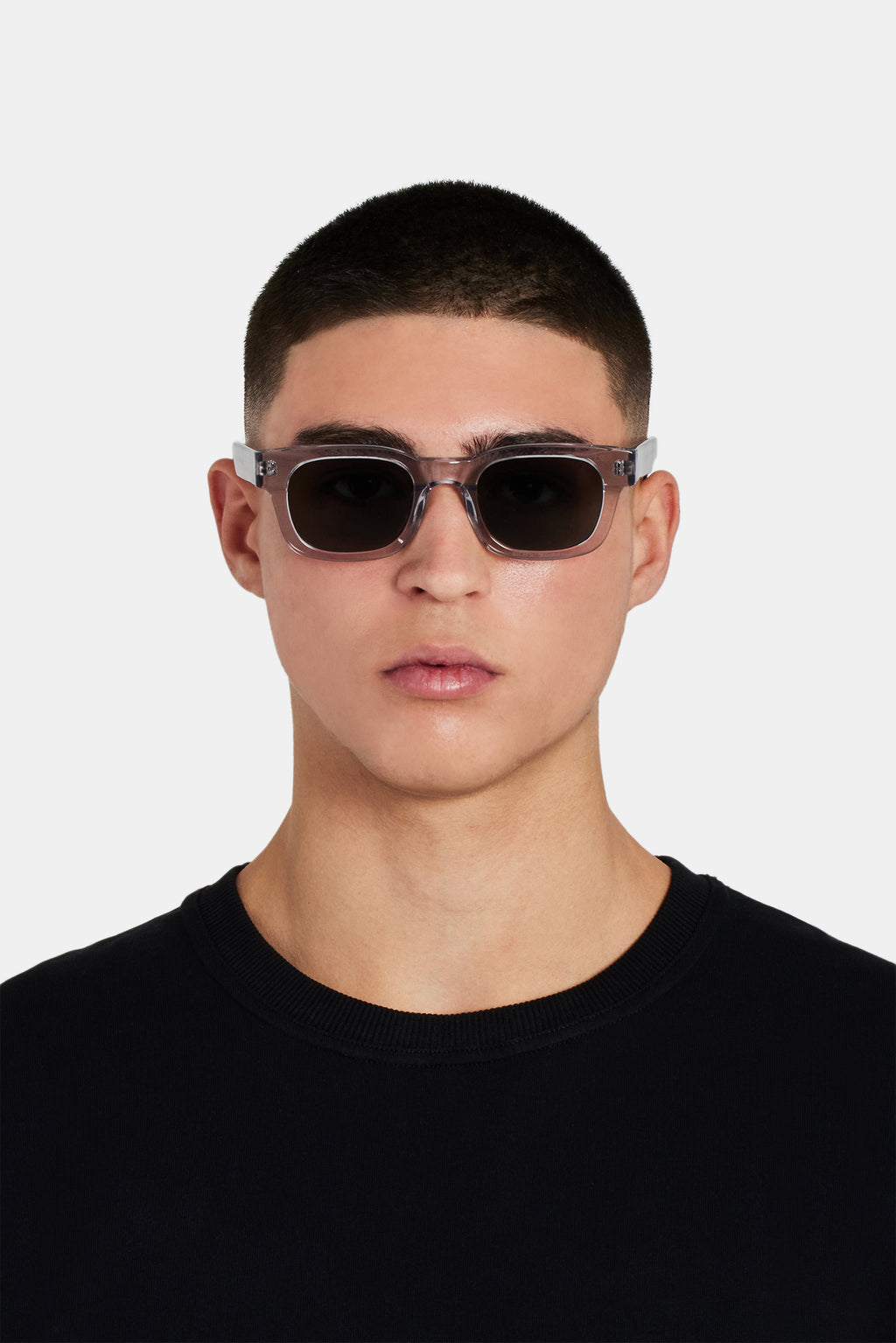 Classic Square Acetate Sunglasses in Transparent Grey.