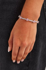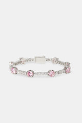 Our Clear & Pink Round Tennis Bracelet goes hard. Pair your tennis bracelet with a chain to complete the look. Turn heads on the low.