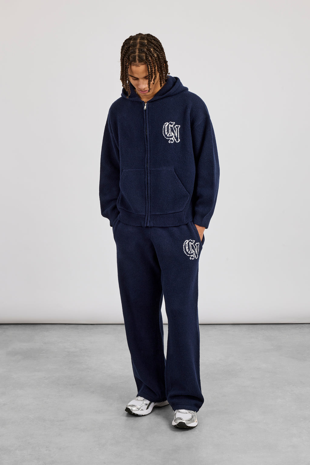 Zip through knitted hoodie in a soft touch knit with CN logo. Pair with our matching joggers to complete the look.