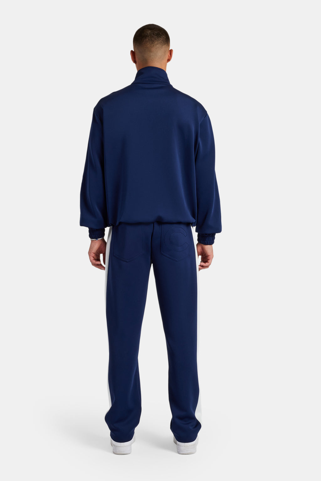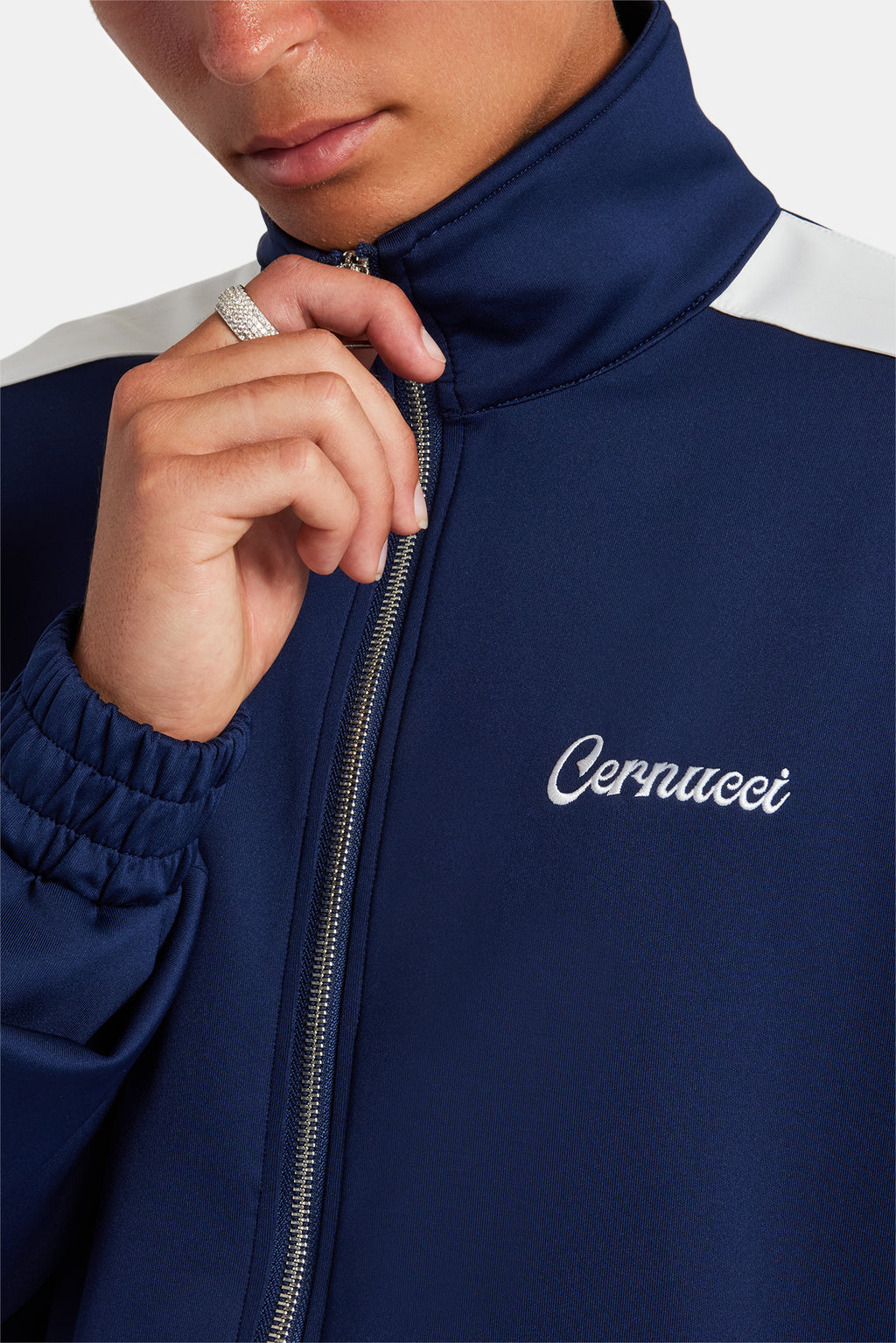 Navy blue contrast panel track jacket in a soft scuba with logo embroidery.