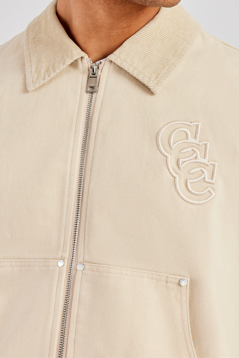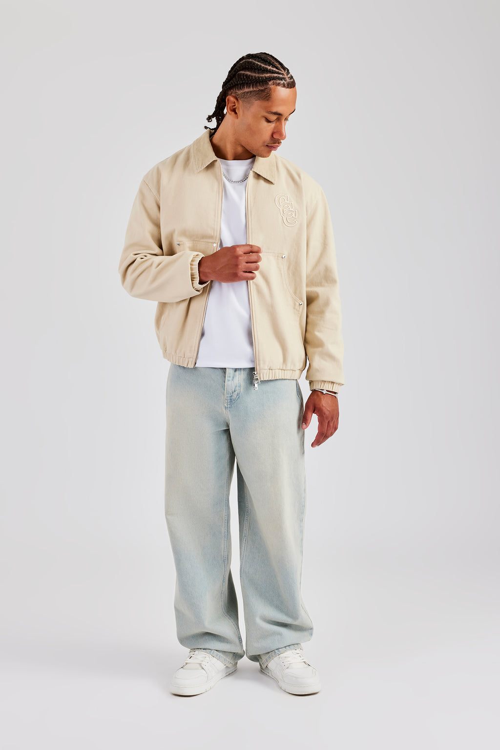 Stone cord collar harrington jacket, made from mid weight premium twill, featuring high build branded embroidery.