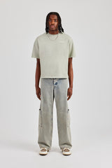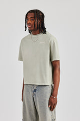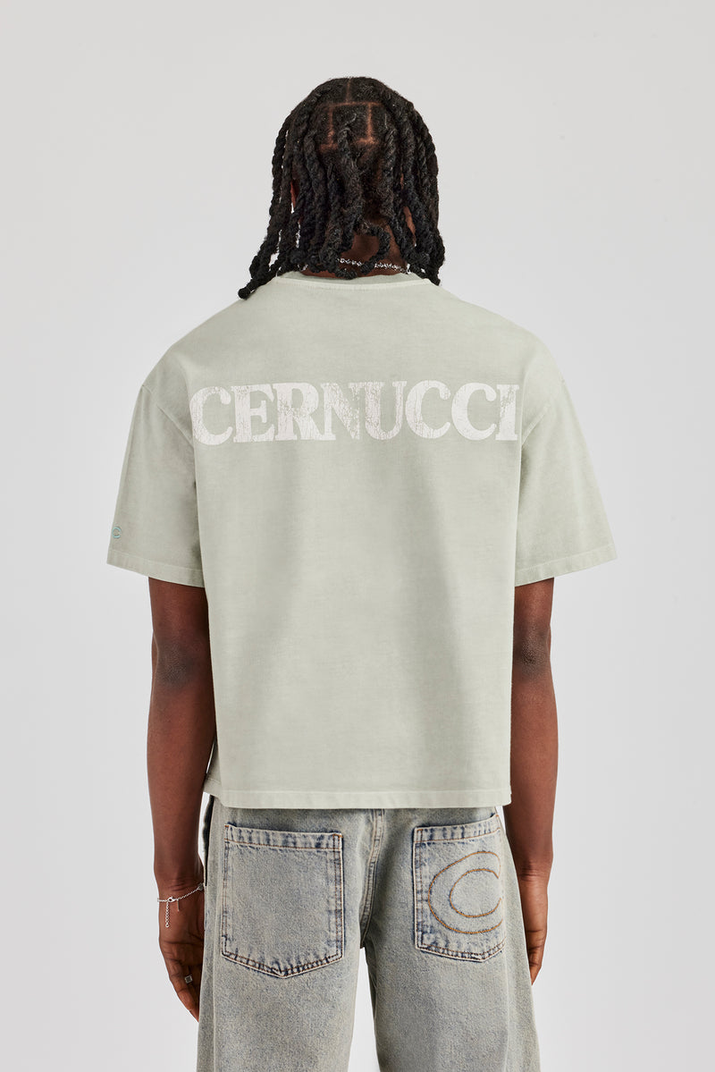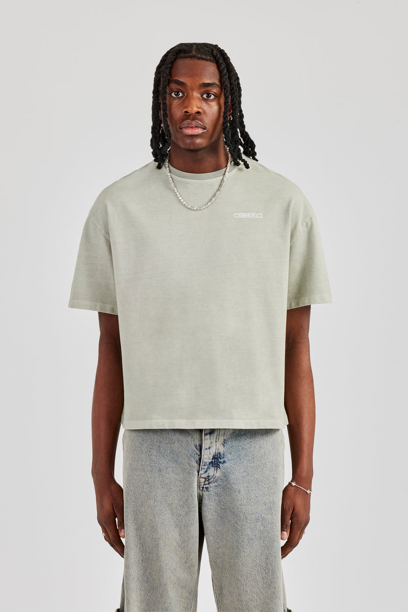 New t-shirt fits featuring our best selling oversized boxy fit, dropped shoulders and cropped body designed to sit on the waist. Green short sleeve t-shirt featuring contrast cracked back print.