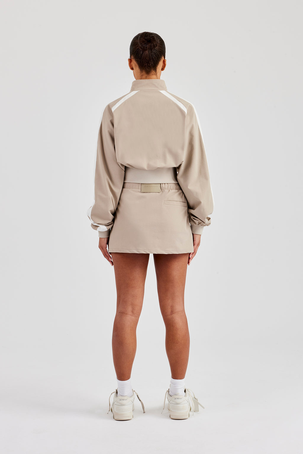 Cropped track jacket with contrast panel and branding detailing in a lightweight nylon.