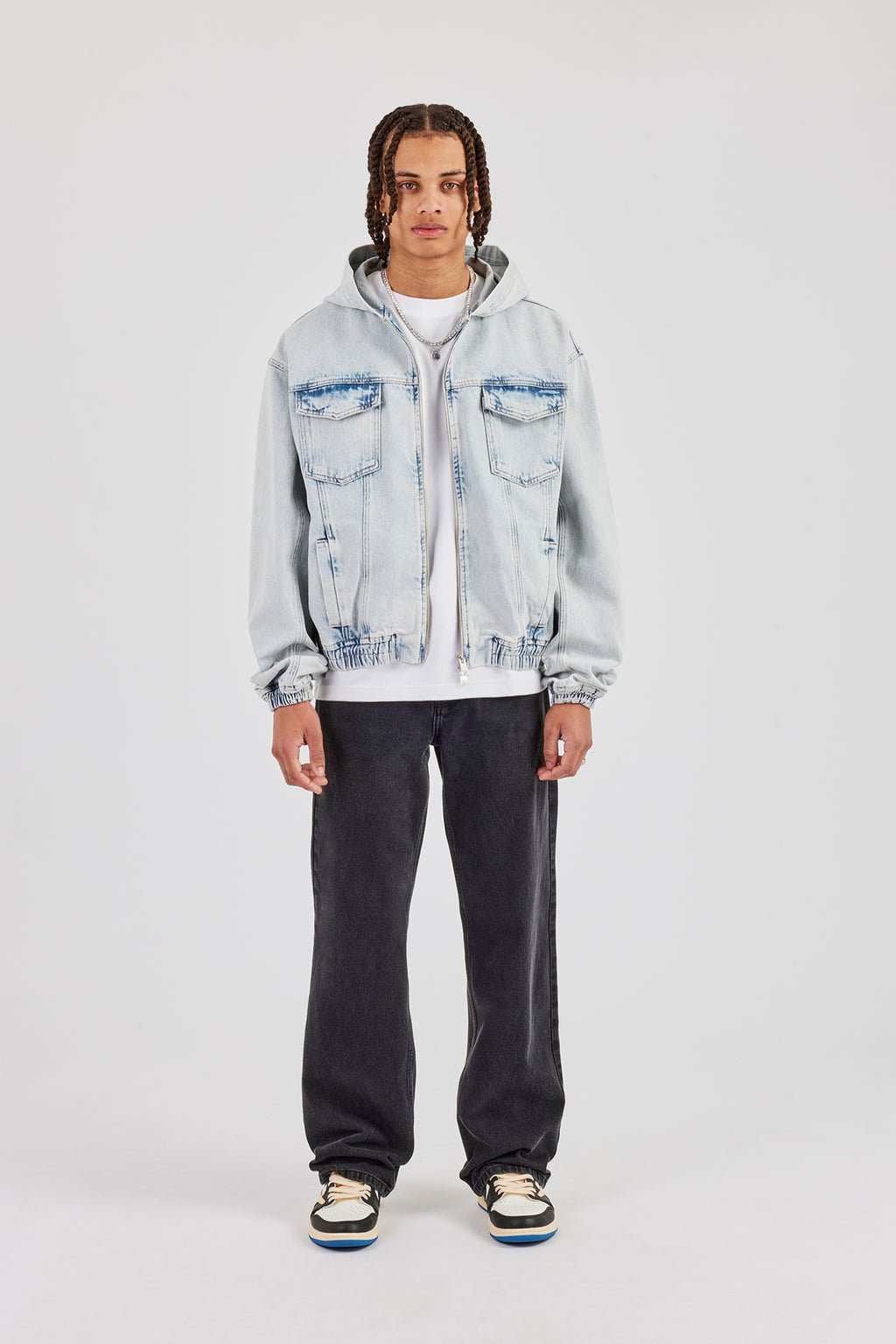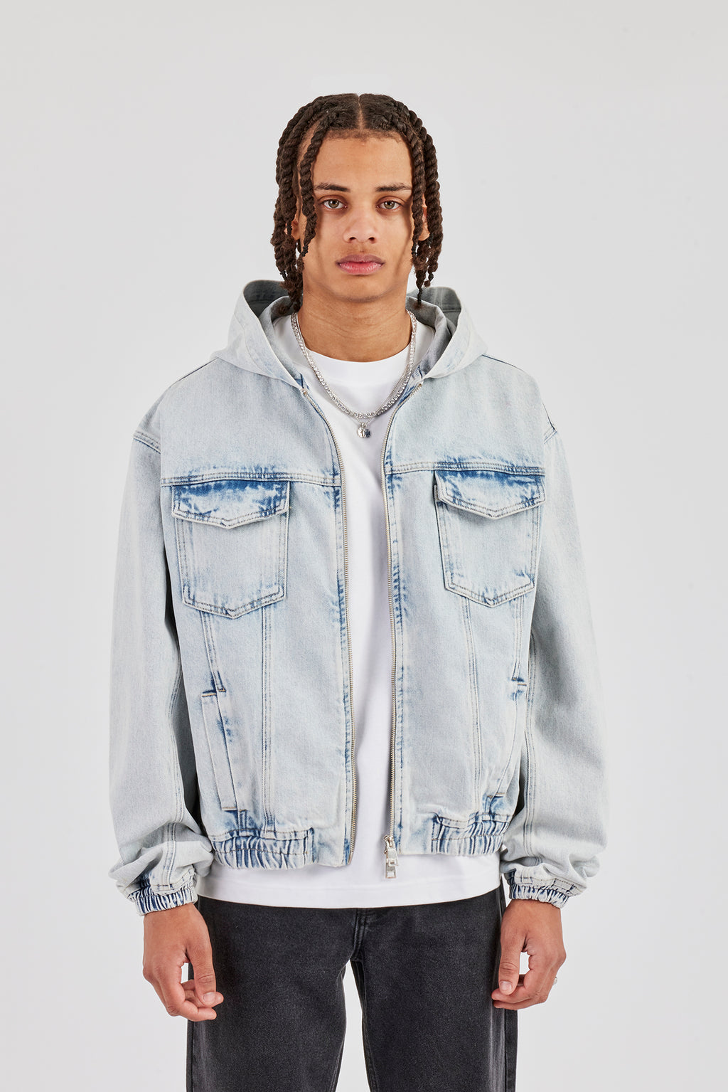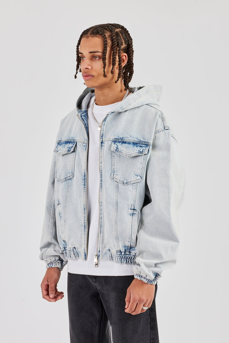 Denim Boxy Fit Zip Hoodie - Ice Blue