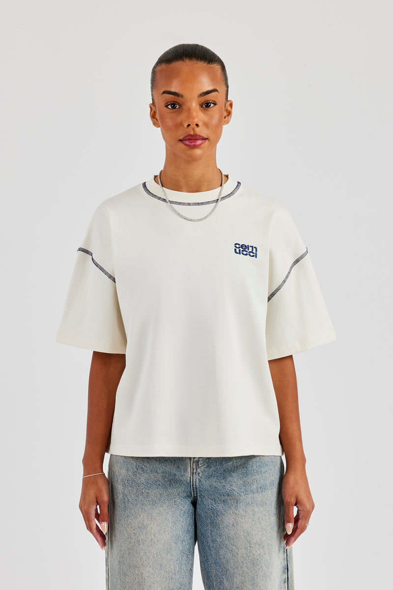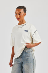 Diamond cut graphic print t-shirt with contrast stitch detailing, oversized boxy fit in a medium weight soft touch jersey