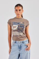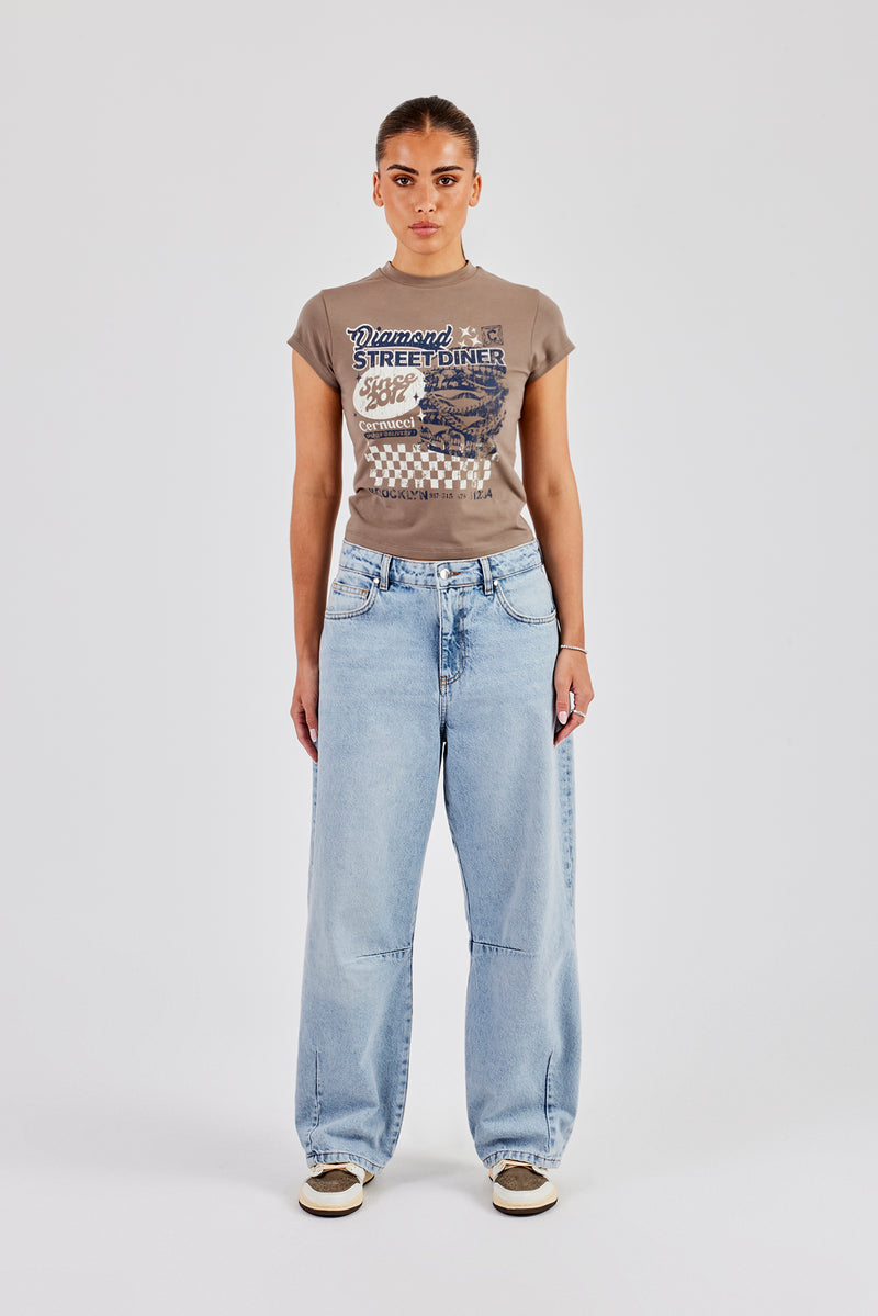 Diamond diner graphic print baby tee, in a medium weight soft touch jersey