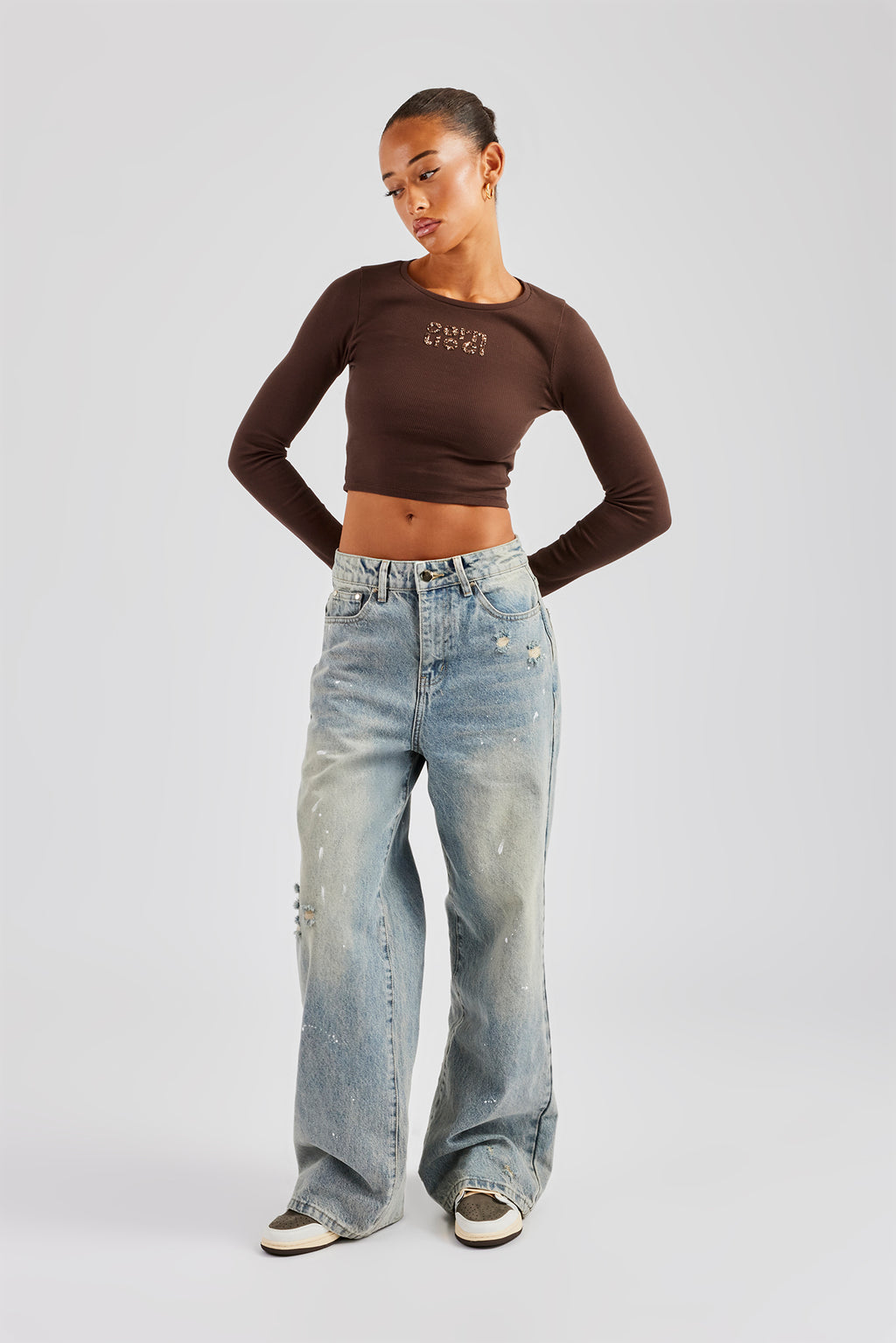 Distressed paint splatter jeans in antique wash, in rigid cotton denim. Baggy fit with, finished with branded trims.