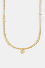 The Double Layer Iced & Pink Agate Heart Rolo Necklace features a frosted pink agate heart charm and a row of pavé-set sparkle—stacked up and ready to steal the spotlight.