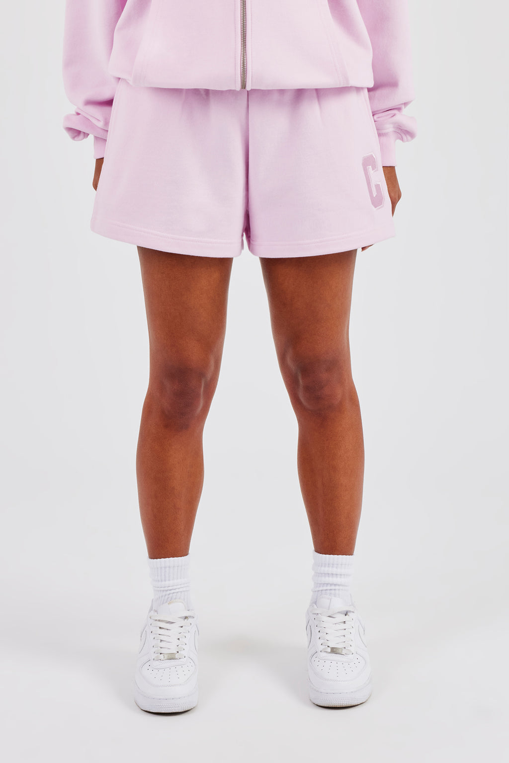 Pink C embroidered shorts in a premium heavyweight soft touch jersey. Pair with the matching zip through hoodie for the full look.