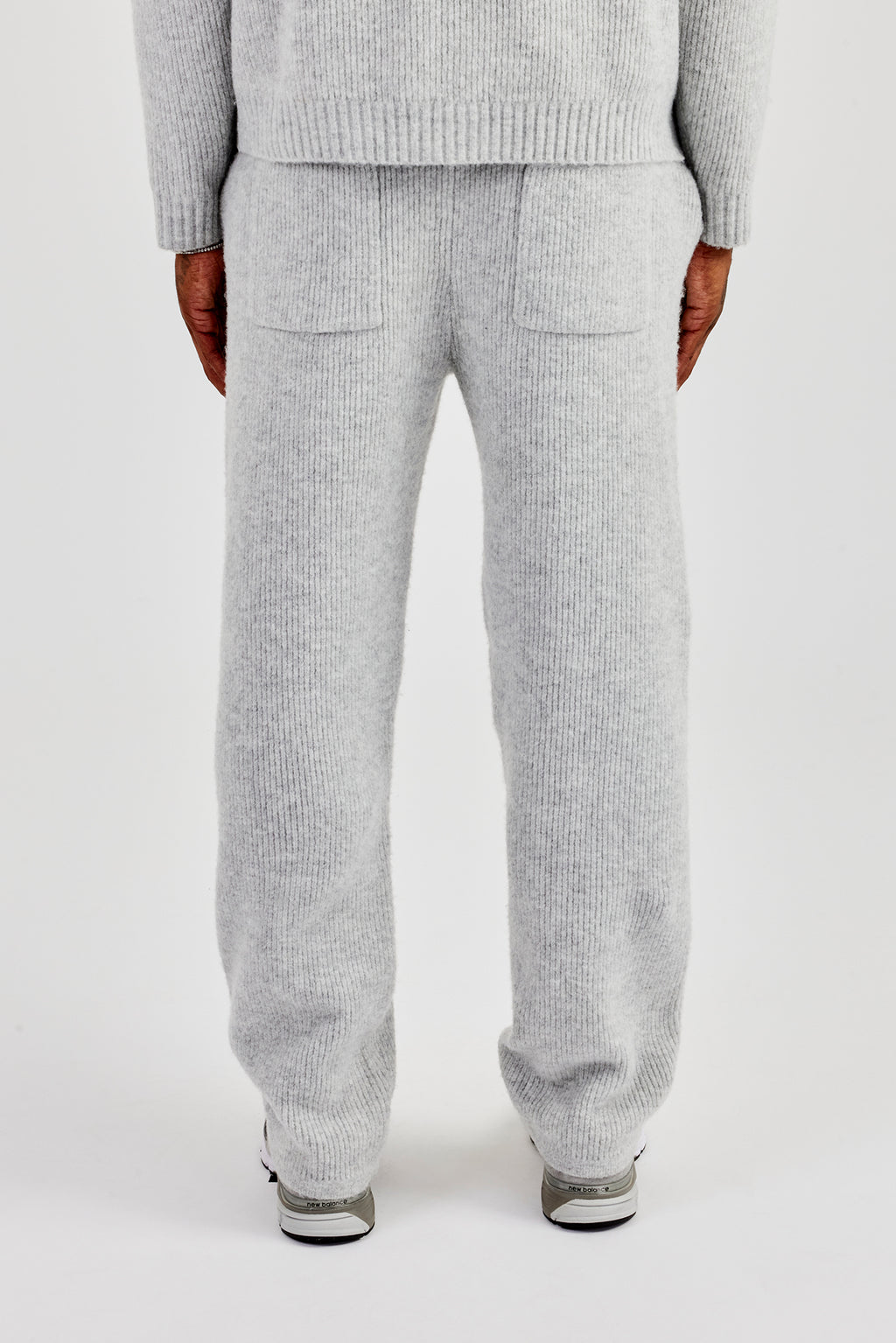 Light grey straight leg jogger in a soft touch knit featuring tonal embroidery.