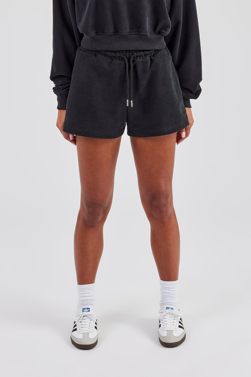 Black shorts in a relaxed fit finished with tonal embroidered branding. Premium heavyweight soft touch jersey.