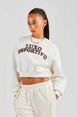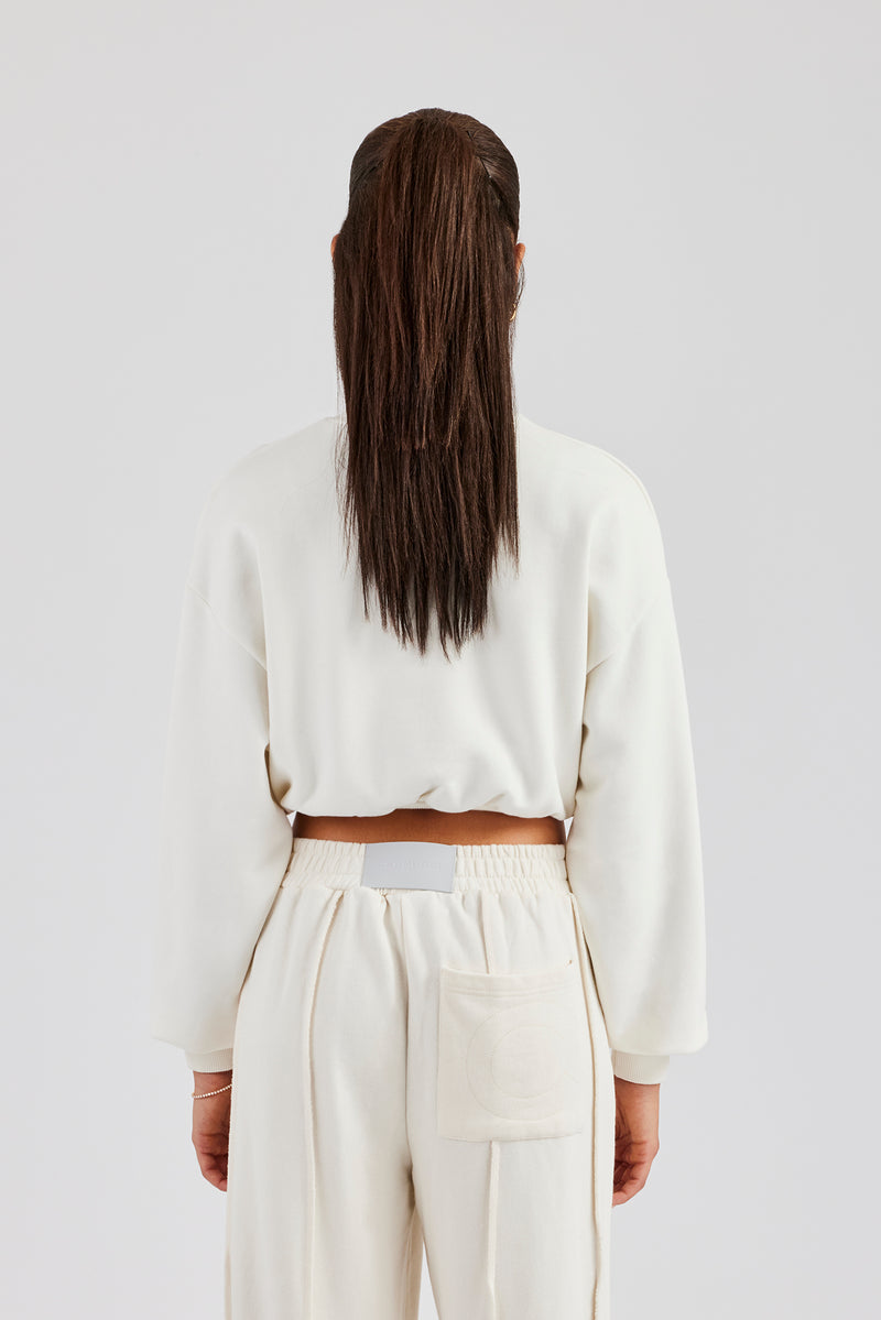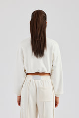 Off White embroidered sweatshirt in in a cropped fit with chocolate embroidery. Premium Heavyweight soft touch jersey. Pair with the matching shorts for the full look.