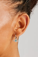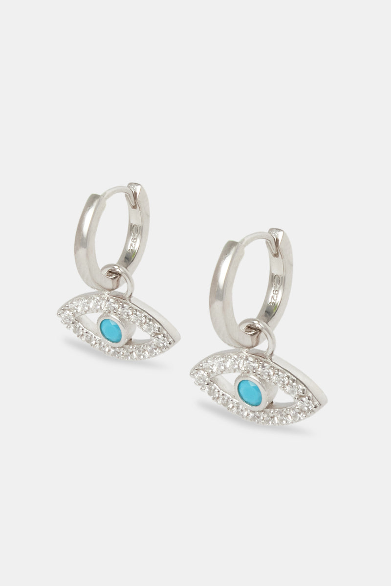 Check out our new evil eye drop earring in silver with blue stone. They come as a pair and go hard with any fit.