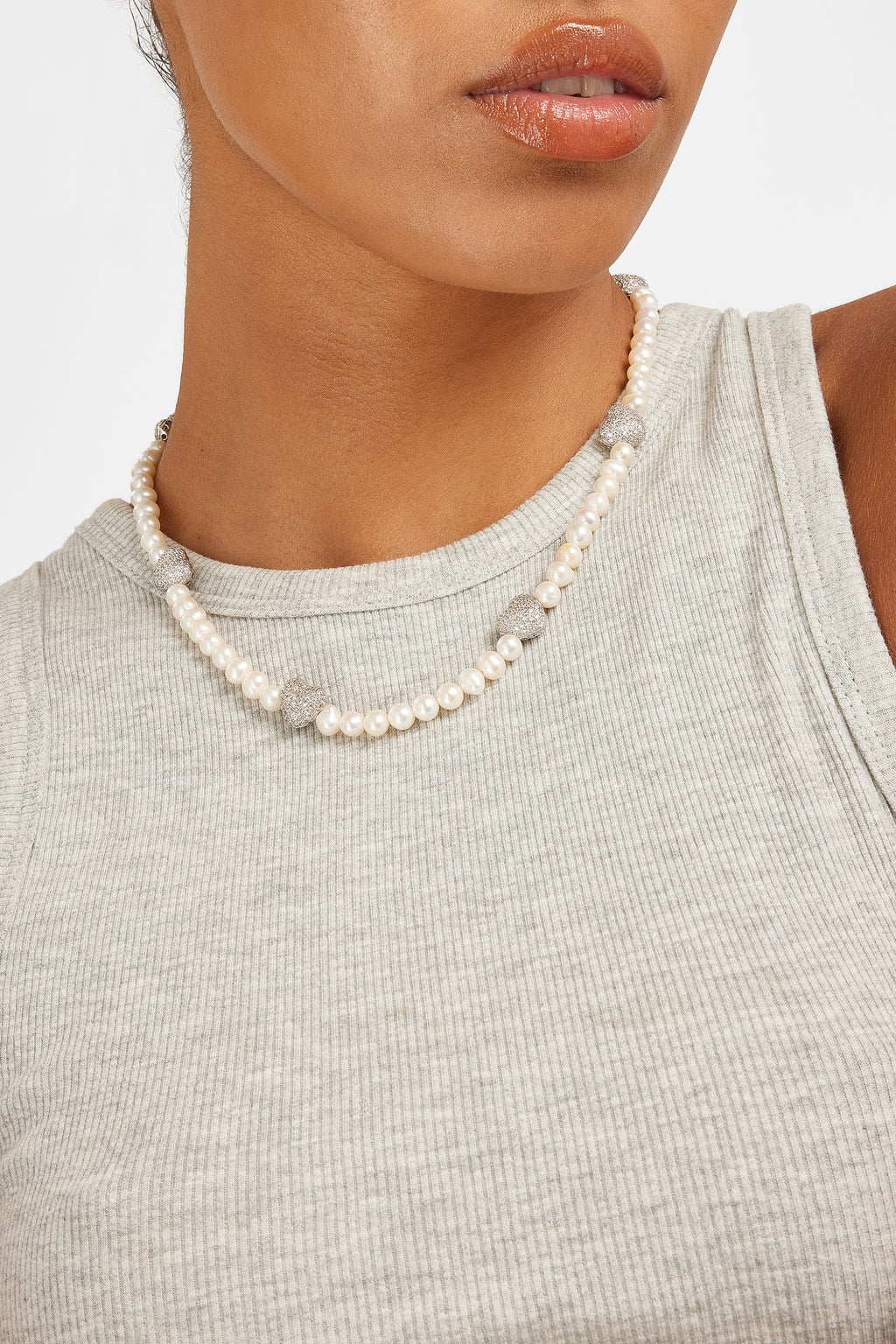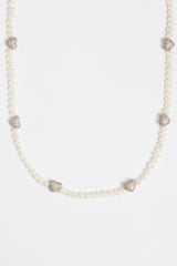 Our hand threaded Freshwater Pearl and Iced Heart Necklace will give you a look like no other. Stack these or rock them on their own and youll be standing out in the crowd this summer.
