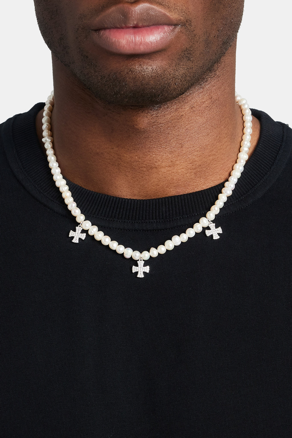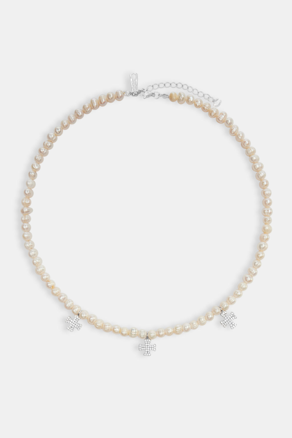 Freshwater Pearl Cross Drop Necklace - White