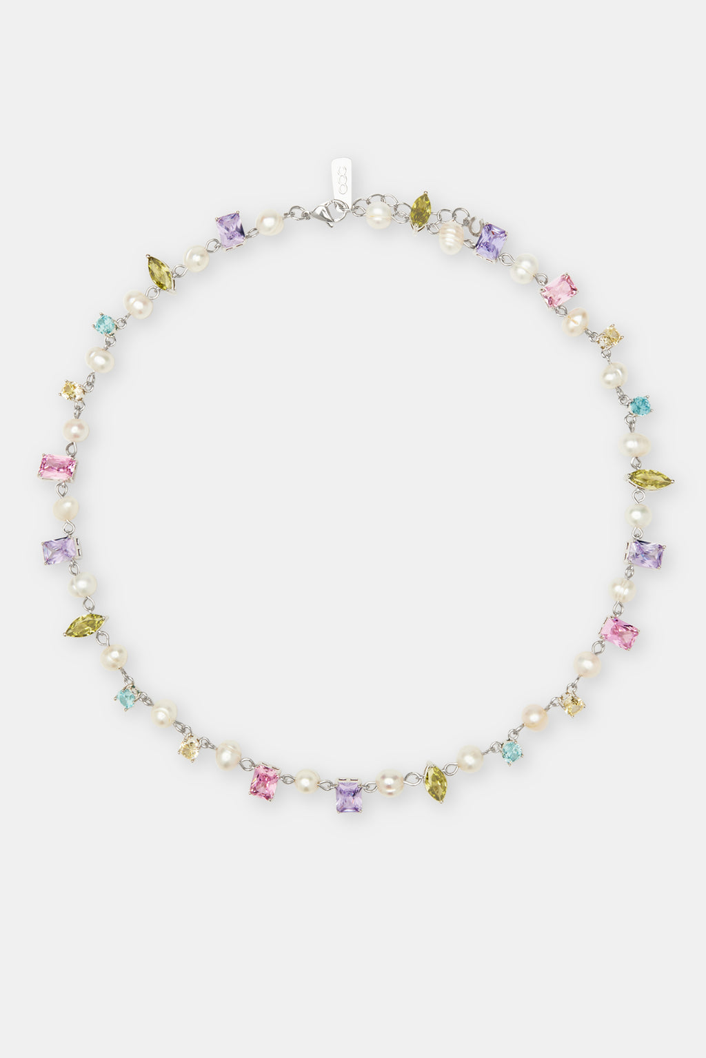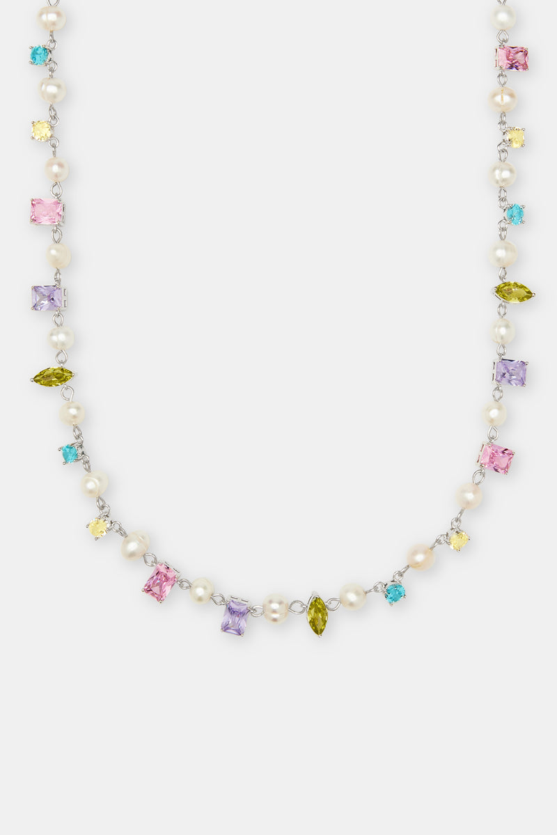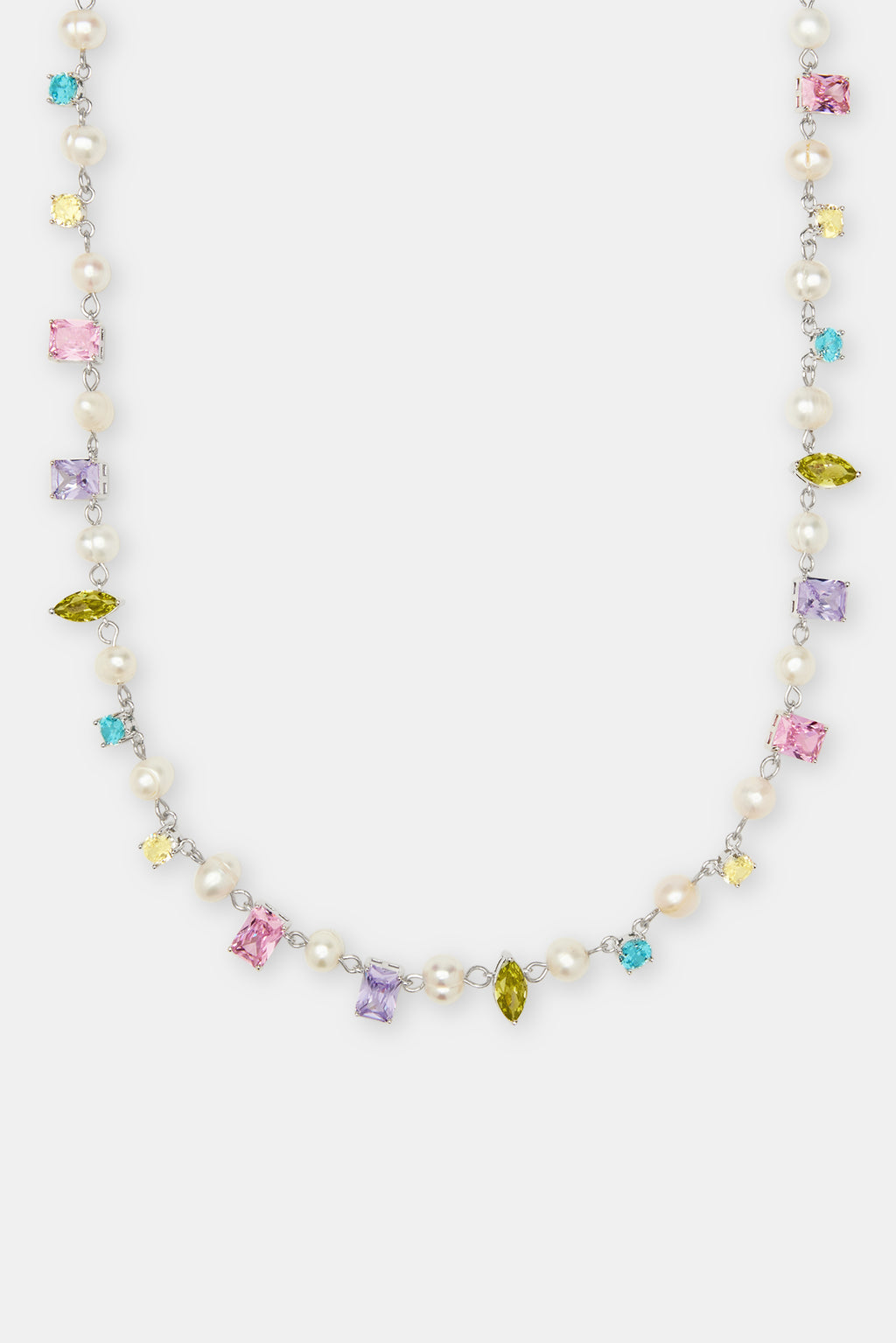 Freshwater Pearl Mixed Shape Gemstone Necklace goes hard. Stack with more pearls or ice. Check out the pearl bracelets to complete the look and to be worn everyday.