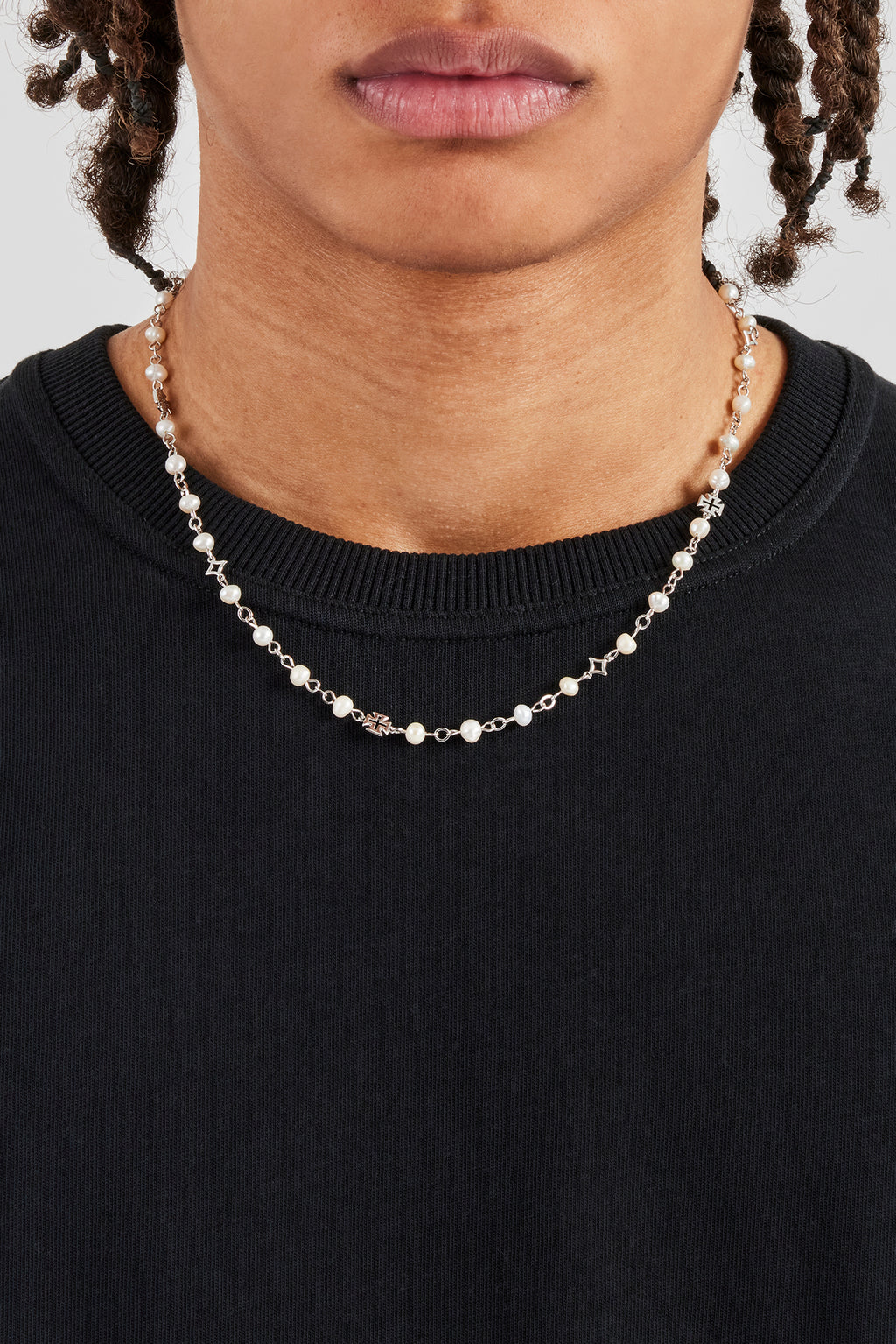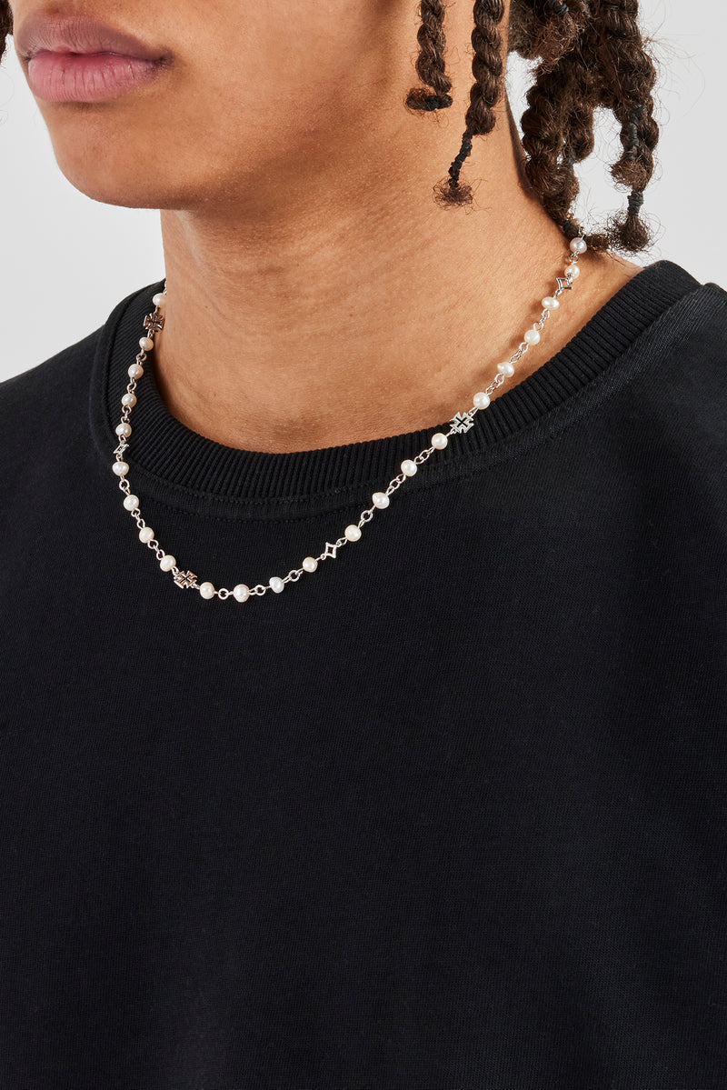 Classic pearls, reimagined. The Freshwater Pearl Motif Outline Necklace blends timeless elegance with a modern edge, featuring smooth pearls and a bold outlined motif for a look that’s clean, sophisticated, and effortlessly stylish. Rock it solo or layer it up—either way, you’re serving premium energy.