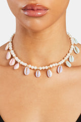 Match this piece with the pearls or Ice for a unique look. Our hand threaded Freshwater Pearl Pastel Cowrie Shell Necklace will give you a new look.