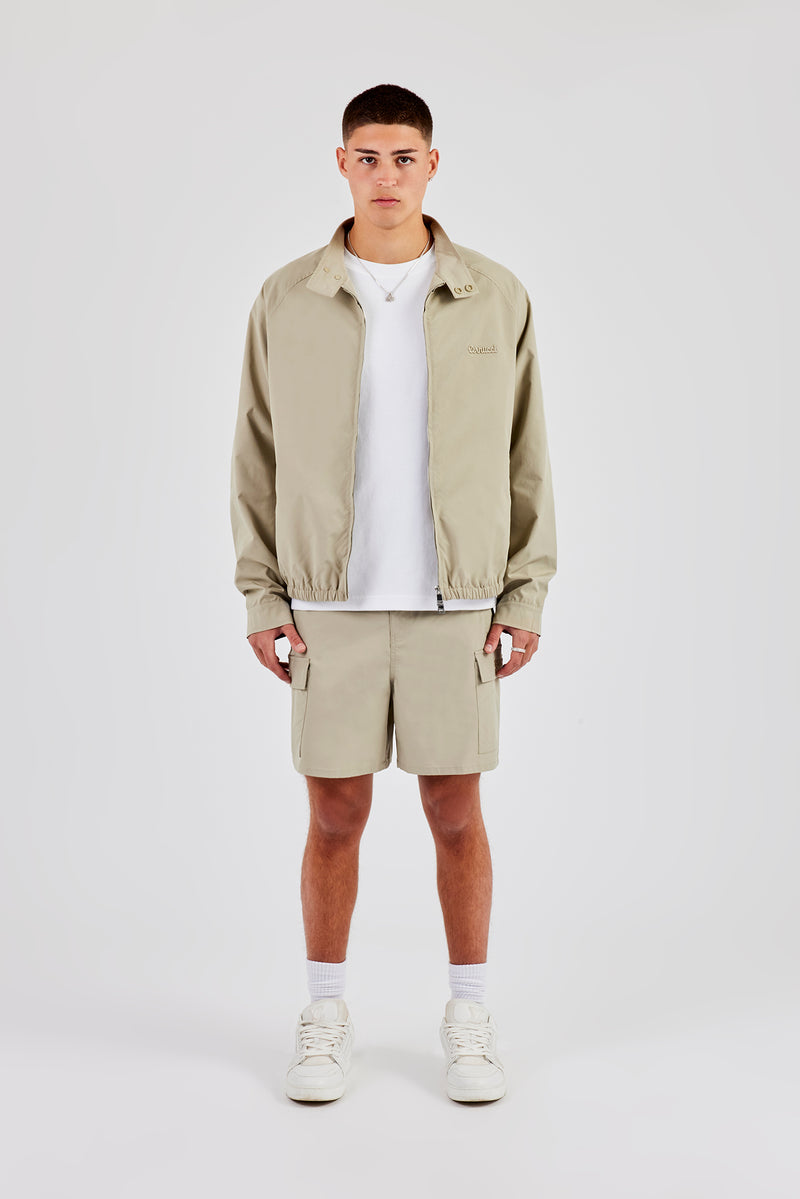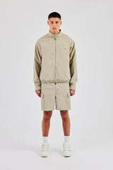 Stone zip through jacket with funnel neck, pair with our matching shorts to complete the look