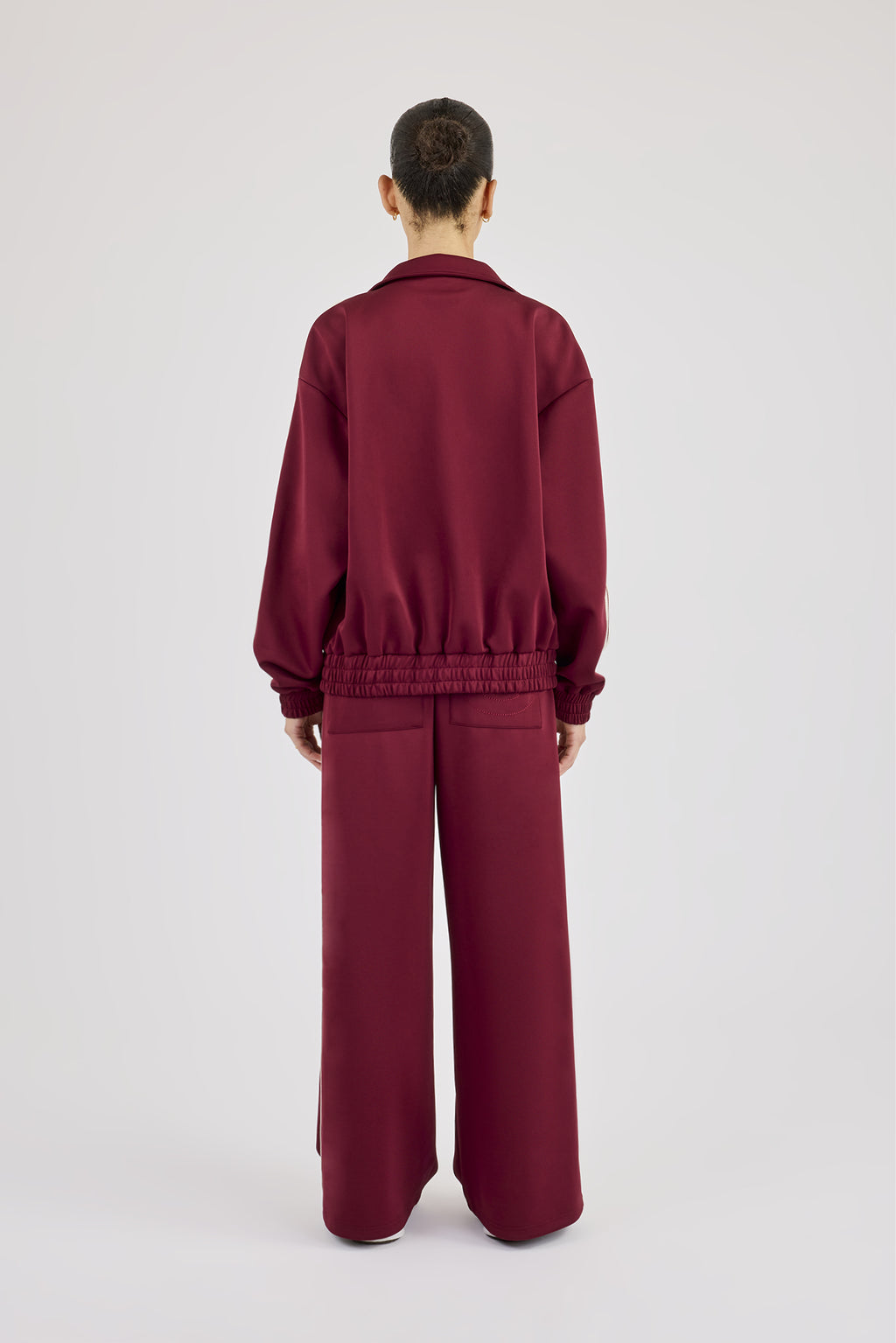 Burgundy taping super baggy fit track pant with elasticated waistband jogging trouser with contrast panels and branding