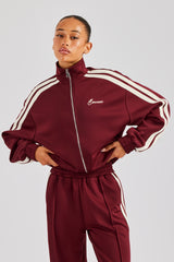 Burgundy zip through taping track jacket in a soft scuba, featuring a contrast side panel.