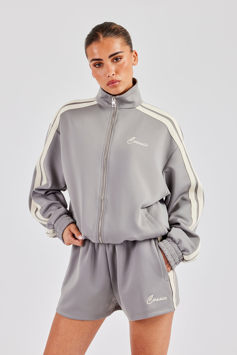 Funnel Neck Taping Zip Through Track Jacket - Grey