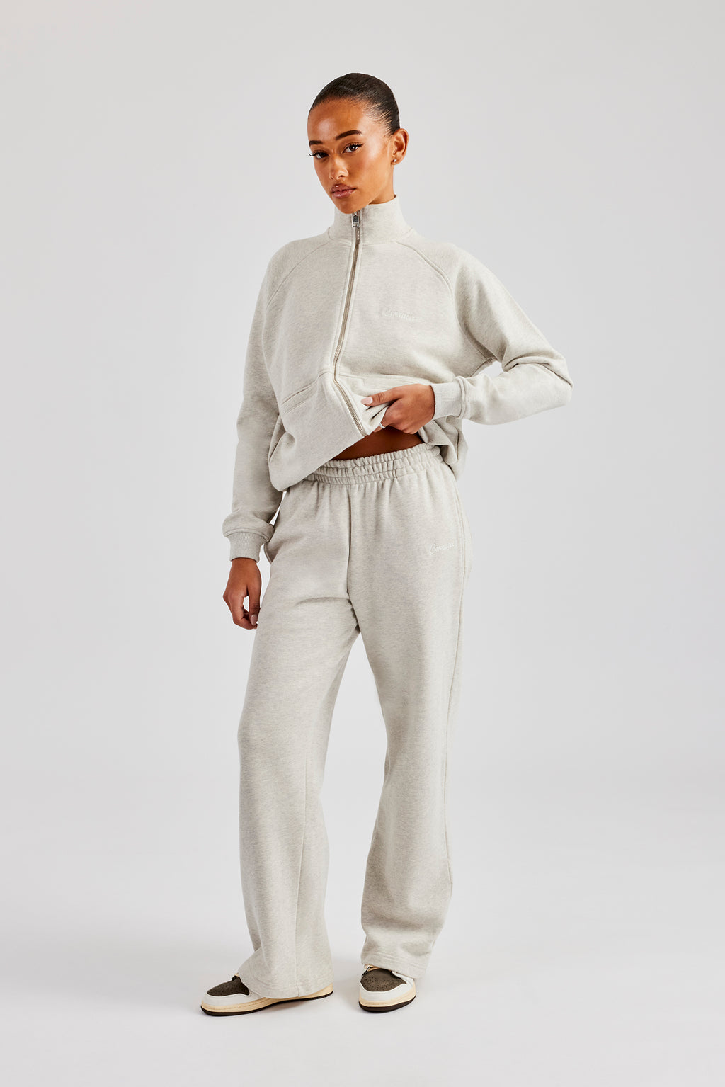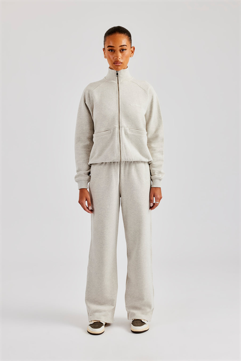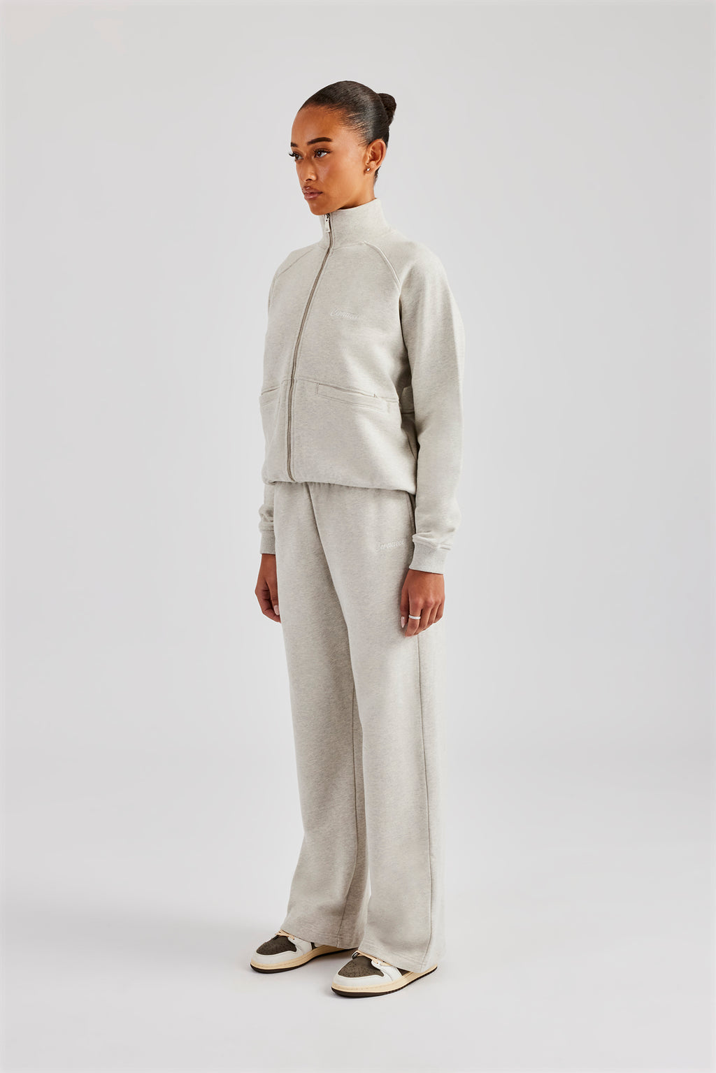 Ash grey Wide Leg Jogger. Premium soft touch jersey with Cernucci branded PU patch on centre back waistband.