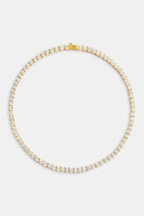 Need a classic look with big shine? Our 5mm Tennis Chains, available in both gold and White, are for you. Its enormous round cut stones/iced will catch light from all angles, to keep your neck dancing all day and night. We have updated the clasp for a cleaner finish.