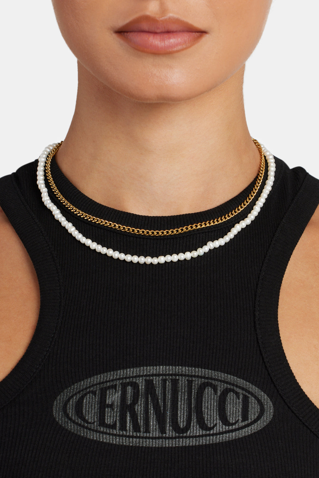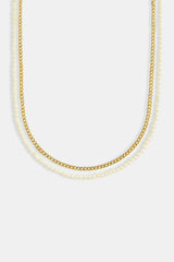 Gold Plated Double Layer Freshwater Pearl & Chain Necklace