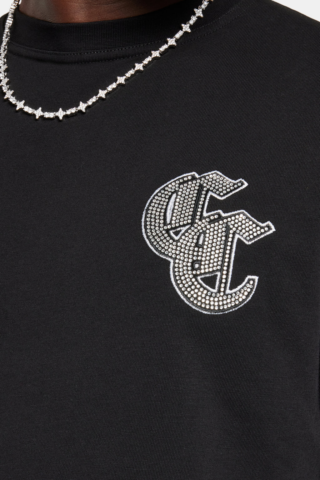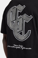 Gothic rhinestone Oversized fit in a medium weight, soft touch cotton. Pair with our washed black denim shorts for a summer look.