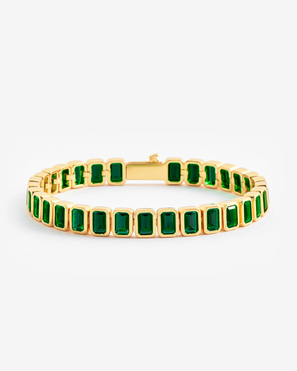 Our Green Bezel Tennis Bracelet creates a completely different and unique shine. Set yourself apart from the rest.