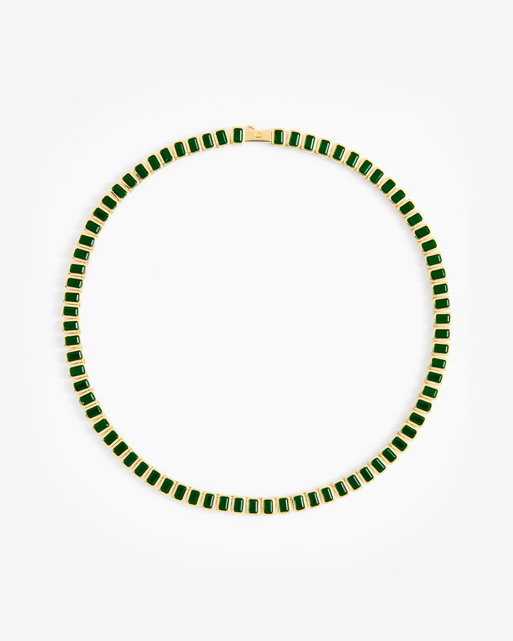 Our Green Bezel Tennis Chain creates a completely different and unique shine. Set yourself apart from the rest.