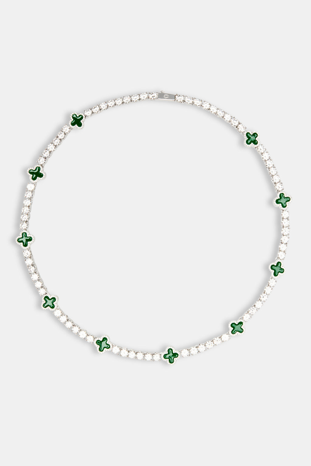 The one you been waiting for. Our tennis chain with Green Motif is here to make a statement. Can be worn as a single chain or layer them up.