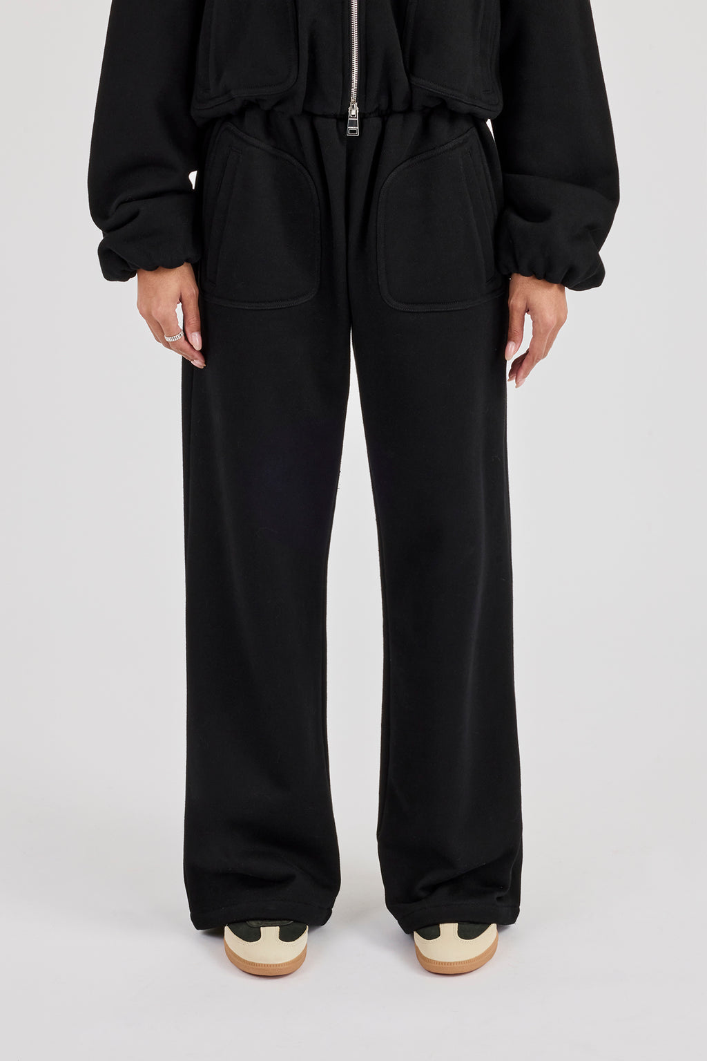 Black wide leg jogger. Premium soft touch heavy jersey.