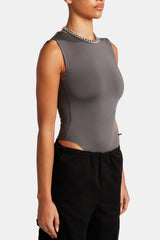 High neck sleeveless bodysuit in a soft touch stretch jersey.
