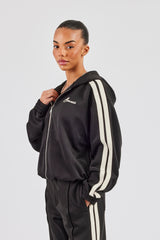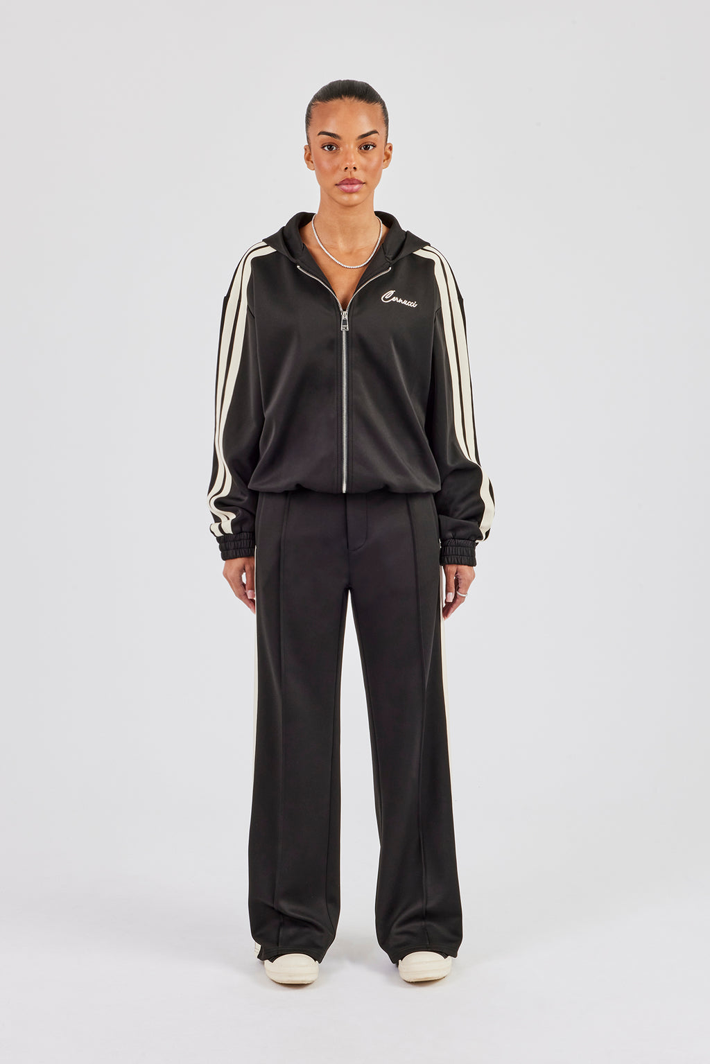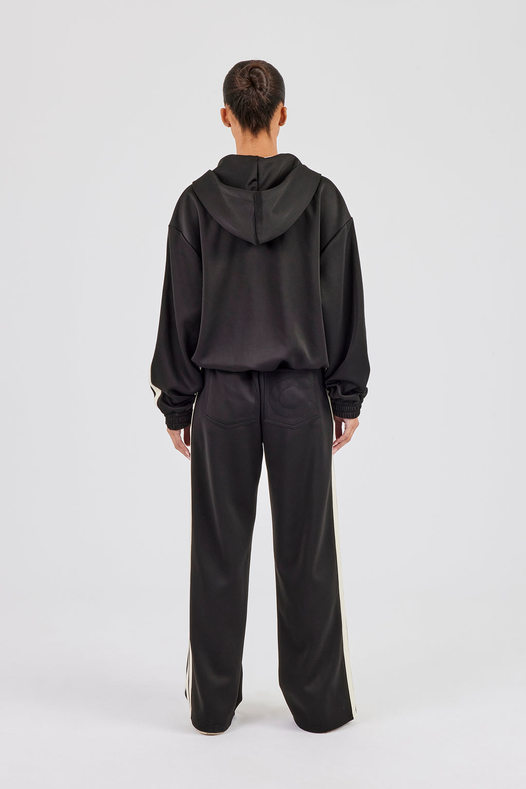 Black tailored taping wide leg trouser. Premium heavyweight soft touch jersey.