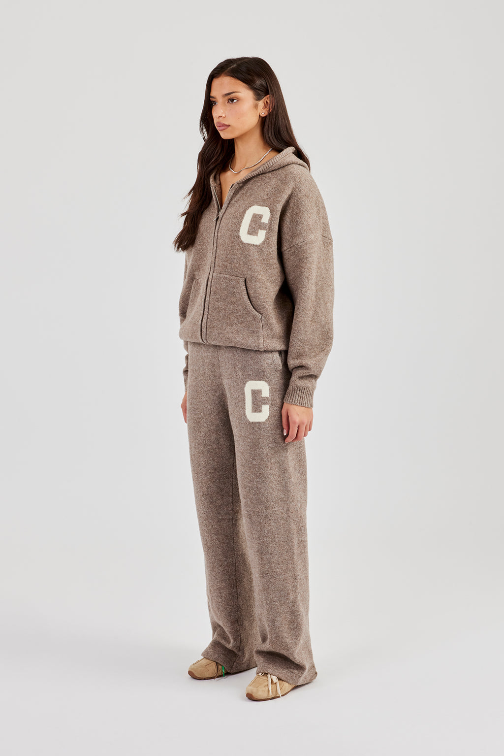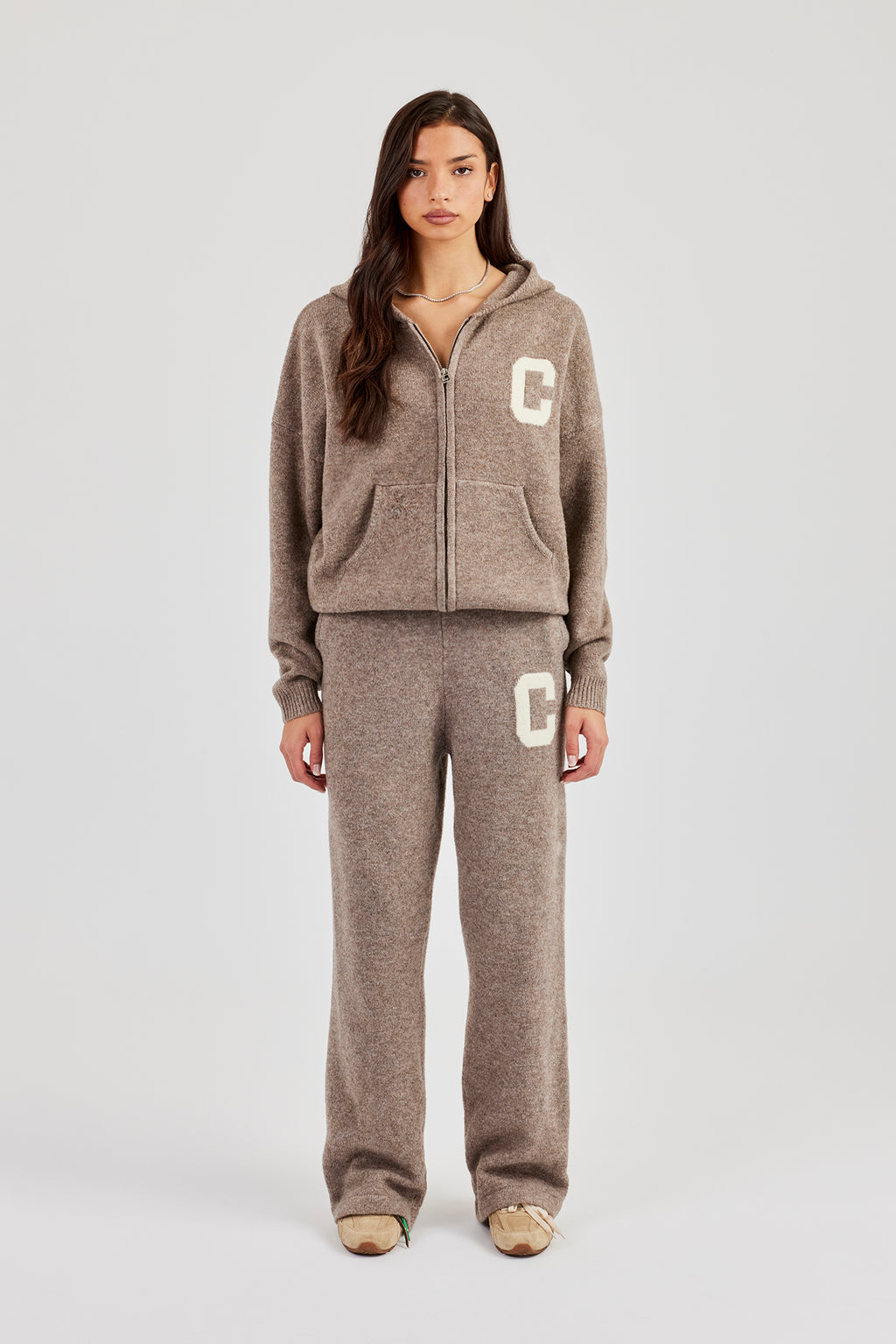Taupe Zip Through Hoodie in a soft touch knit with jacquard C logo. Pair with matching joggers to complete the look.